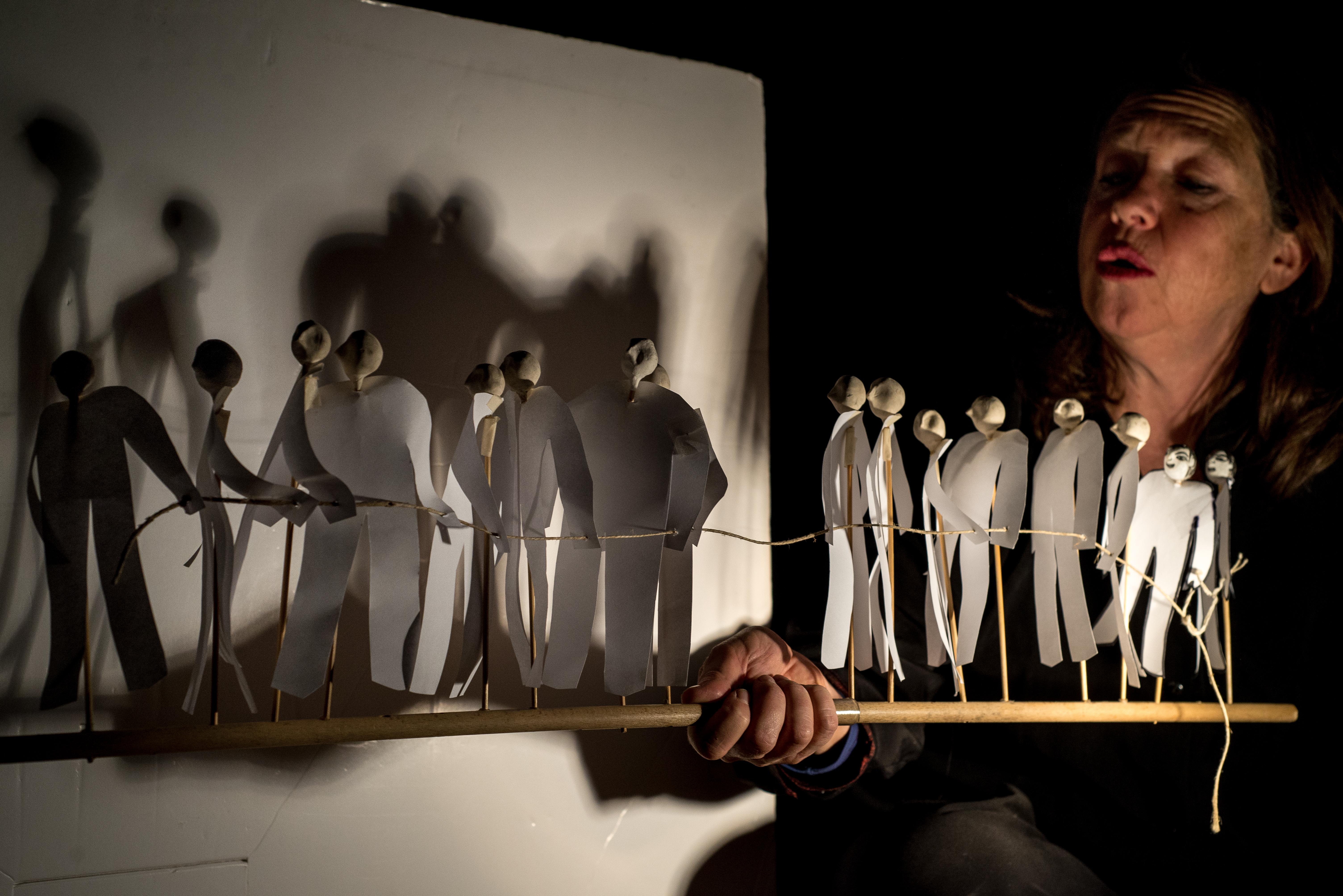 בהצגה  שחקנים, בובות, תיאטרון צלליות ומסיכות.
